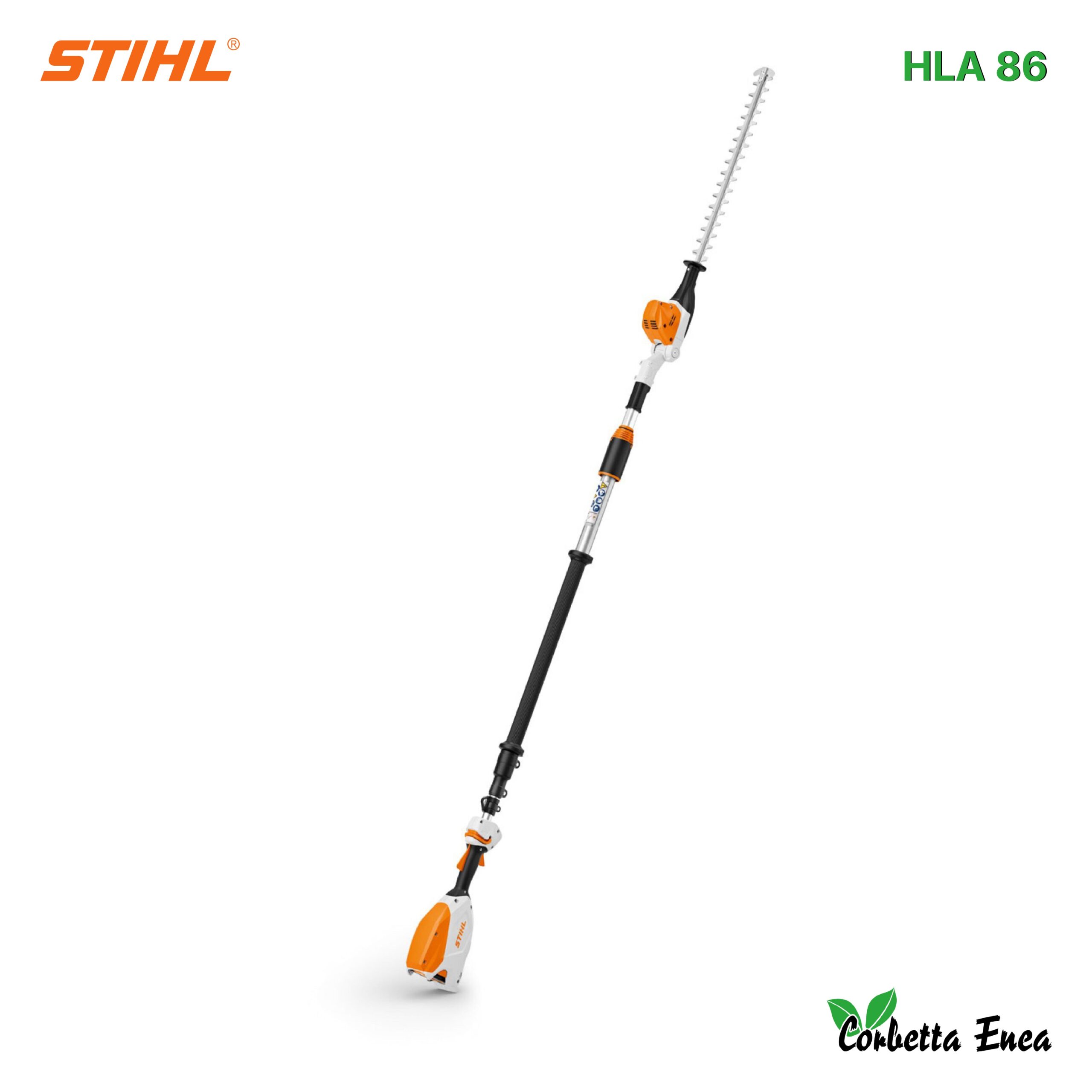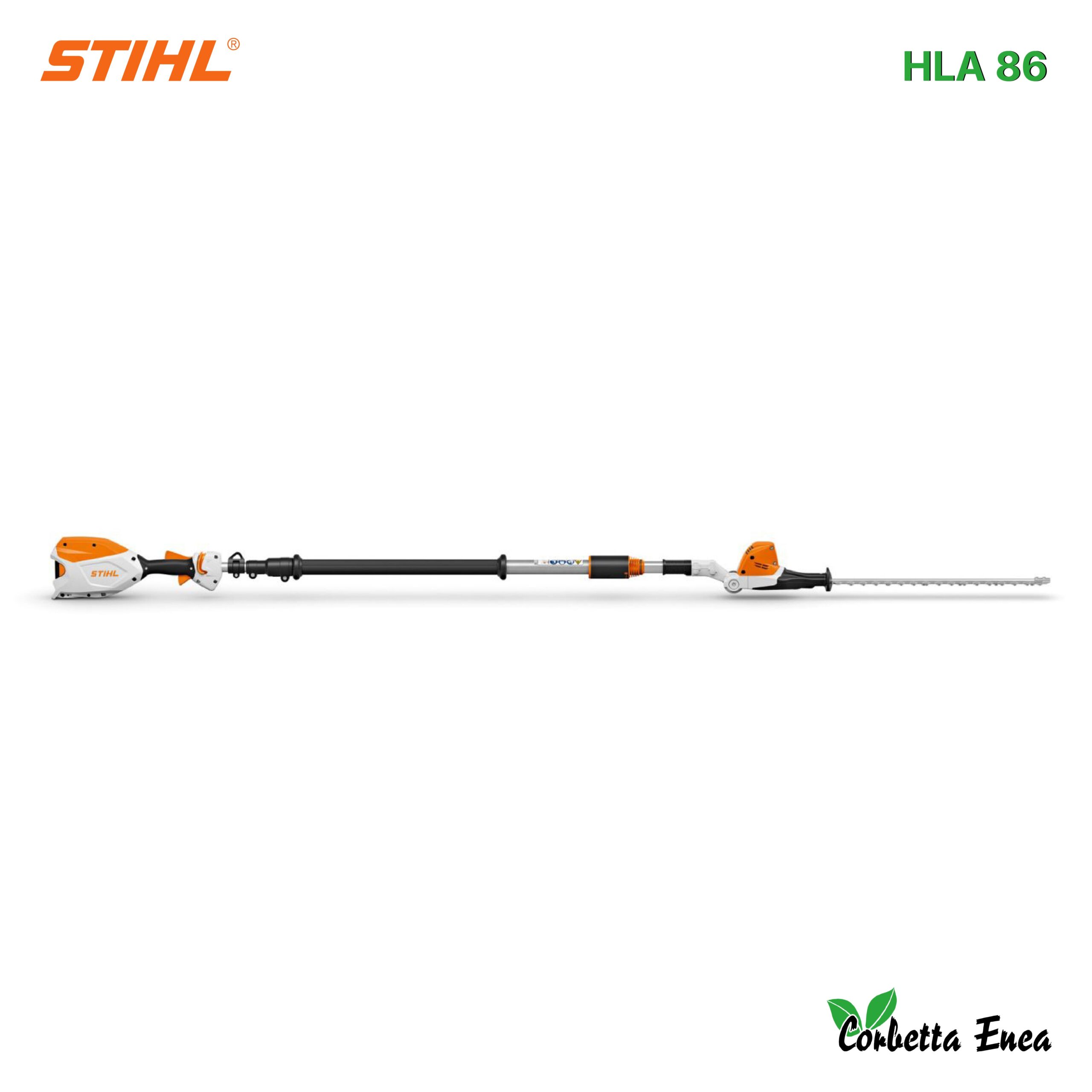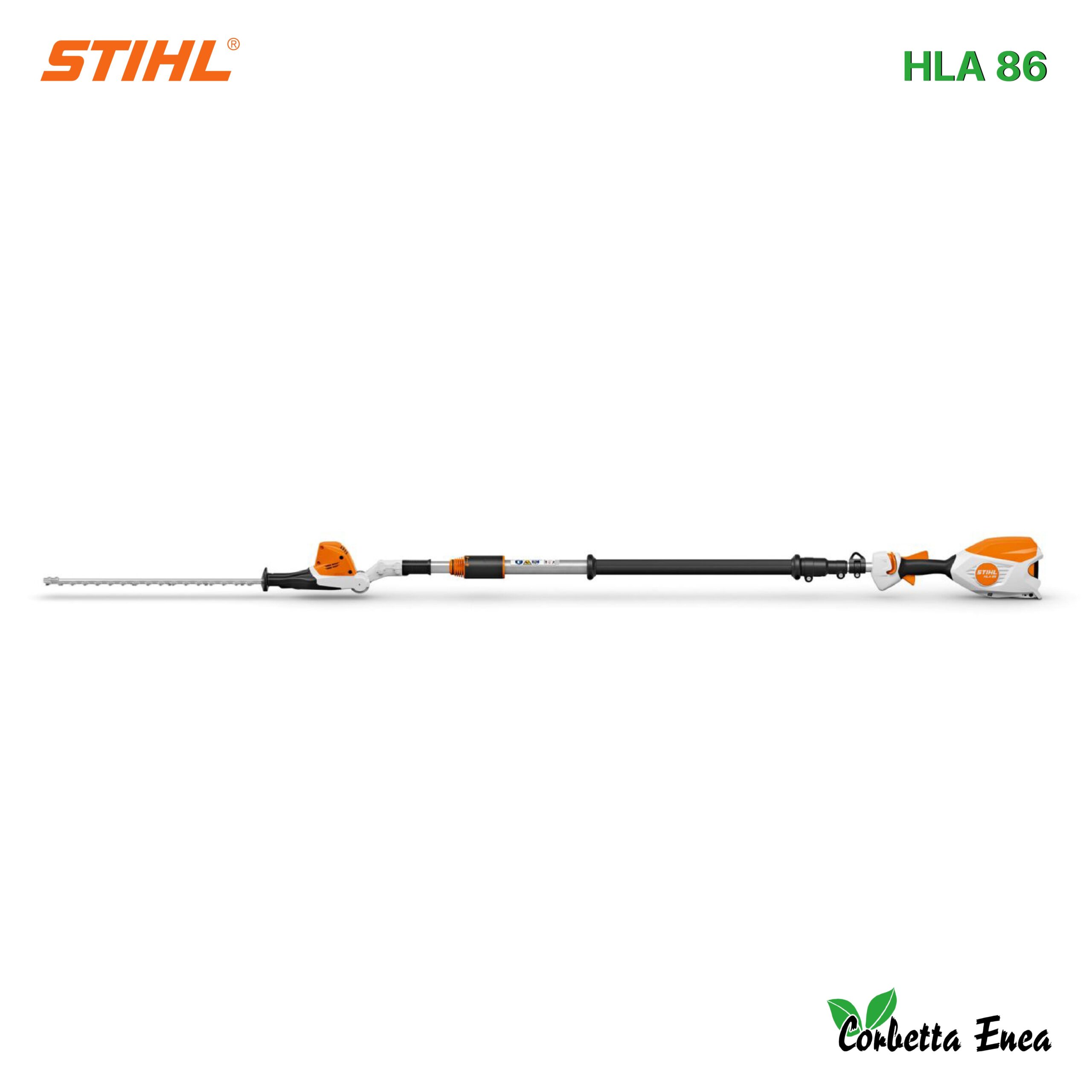 Lunghezza lama 50 cm, Tensione nominale 36 V, Peso 4,8 kg, Livello di pressione acustica 80 dB(A), Livello di potenza sonora 91 dB(A), Valore delle vibrazioni 2,3 m/s² a sinistra / 1,6 m/s² a destra. Sistema a batterie STIHL Sistema AP, Lunghezza totale 260 – 330 cm, Numero di colpi 3.000 min-1, Passo dei denti 33 mm.