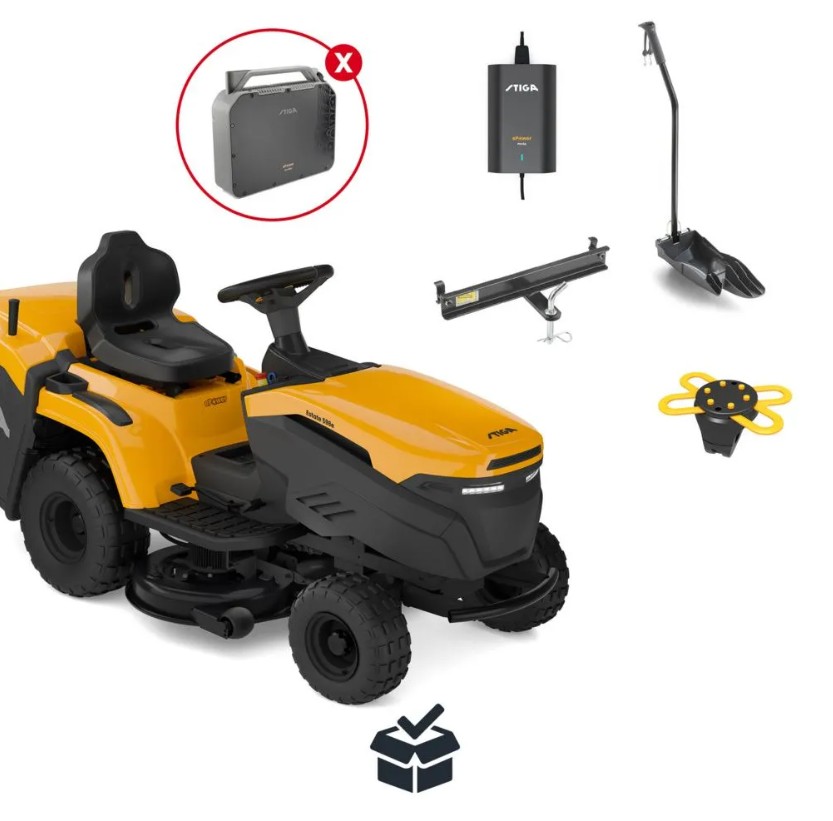 Info generali: Alimentazione Batteria, Equipaggiamento massimo di batterie 2, Equipaggiamento minimo di batterie 1, ePower Si, Potenza 4.5 kW, Voltaggio 56 Volt, Area massima di lavoro in modalità ECO / condizioni di taglio leggere 13000 m², Area di taglio 8800 ㎡, Kit batteria Non incluso, Tipo batteria Ioni di litio, Energia nominale batteria al litio 2000 Wh, Numero di celle 112, Potenza di ricarica 5 A, Sistema di ricarica Caricatore esterno, Controllo temperatura Sì – Sensori temperatura, Raggio minimo non tagliato 70 cm, Sistema di taglio Raccolta, Larghezza di taglio 98 cm, Taglio in retromarcia Si, Piatto di taglio rinforzato No, Rotazione lama Asincrono, Regolazione altezza di taglio, Manuale con leve, Posizioni altezze di taglio 7 posizioni, Altezze di taglio 25 – 80 mm, Tracciabilità dell’altezza taglio No, Numero lame 2, Tipo lama Alettata, Sistema di taglio aggiuntivo, Scarico posteriore, mulching multiclip, Tipo innesto lama Elettrico, Eco-Mode No, Trazione Trazione posteriore, Numero marce No, Metodo di trasmissione Tramite pedale, Trasmissione Elettrica, Alloggiamenti batteria 2, Svuotamento sacco raccolta Manuale, Capacità sacco raccolta 240 l, Volante STIGA new comfort plus, Tipo sedile STIGA new comfort, Regolazione sedile Manopole di blocco, Cruscotto Si con LED, Dimensione ruote anteriori 15×6.00-6, Dimensione ruote posteriori 18×8.50-8, Contaore No, Luci Led, Cruise control No, Asse frontale in ghisa No, Paraurti Si, Raccordo tubo acqua Si, Modello sacco raccolta Tessuto, Vano portaoggetti Si, Vano portabicchiere Si, Asse frontale pivotante Si, Ruote antiscalpo 2, Sistema di sicurezza Sede con interruttore di sicurezza, Gestione tramite app Stiga.GO, Kit mulching Incluso, Caricabatteria Incluso, Kit traino Incluso, Peso confezione 214.5 kg, Lunghezza prodotto 2340 mm, Larghezza prodotto 902 mm, Altezza prodotto 1098 mm.